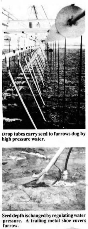 The Mobile Irrigation Planting System, or MIPS, uses a stream of high-pressure water to dig a furrow, and then places the seed and covers it. It can also inject sub-surface fertilizer while planting.