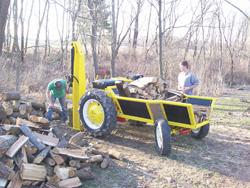 The cart is supported by a frame made from 2 by 3-in. rectangular tubing. "This machine actually makes it fun to go out and split wood," says Neiheisel. "It lets us go into the woods and split wood with just one machine. There's no need for a separate tractor and wagon. It'll hold more than half a pickup load of wood.