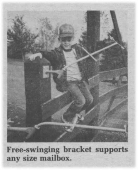 "Swings up out of the way when hit and then returns to center on its own," says Vince Koebensky, manufacturer of a new "Swing Away" mailbox holding bracket.