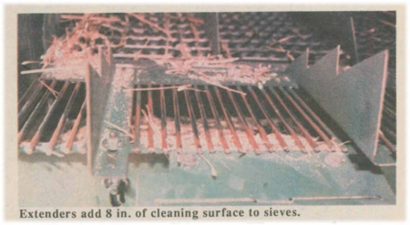 The bolt-on extenders simply attach to the rear of the sieves across the entire width of the machine, spaced by 6 "fish-back" separators that help flip crop material over.