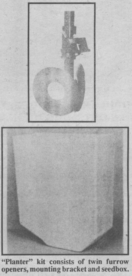 It consists of twin disk furrow openers, mounting bracket and a seedbox for each "planter" row.