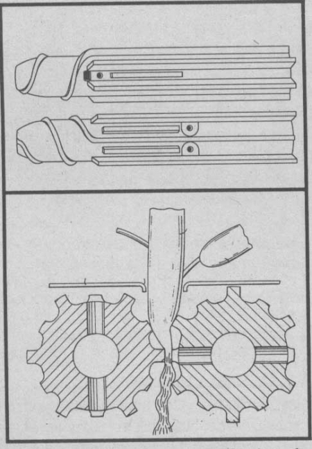 "They're much more aggressive than conventional rollers," says Schoolman. "Running the knife blades directly against each other results in a deeper crushing action than the intermeshing blades on conventional rollers. They also snap corn ears off cleaner. We conducted field tests on 600 units over a 3-year period with no problems. The rollers didn't wrap even in wet grass that was 4 ft. high. The corn stalk remains connected to the root about 90% of the time.