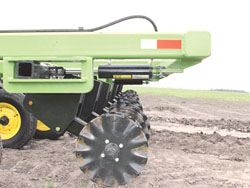 “Our new vertical tillage machine lets you change the coulter angle from your tractor seat on-the-go, according to field conditions,” says John Redekop, Mandako Agri, Plum Coulee, Man.
