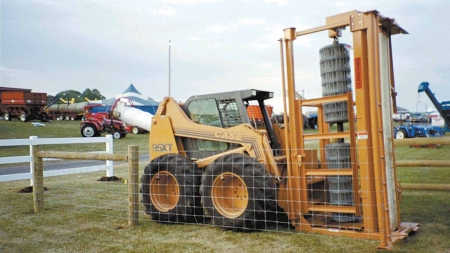 "Our new fencing machine allows one person using a skid steer loader to install or rewind all types of fencing, including woven wire, barbed wire, and chain link fence," says Sylvan Yoder, Beaver Fence LLC, McVeytown, Penn.