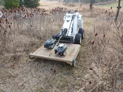 “It’ll cut brush up to 1 in. thick. The beauty is that I can lift the deck above tall grass and keep going without having to slow down. By using the skid loader I can mow without having to drive over the brush first, and the skid loader’s 4-WD provides good traction.