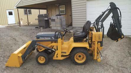 Jake Tolstedt says he located and saved various parts for his home-built loader and mini backhoe for years before he finally started building his self-designed rig. "I found a used Johnson loader that had been on a Montgomery Ward?s lawn tractor and fit it onto my Deere 318 tractor," Tolstedt says. "About that time I saw lawn tractor backhoe plans from PF Engineering in FARM SHOW, so I ordered them and went to work."
