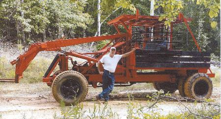 "It really comes in handy around our farm and saves a lot of wear and tear on our other tractors and pickups," says Mississippi farmer Jerry Coleman, of Belmont, about the big loader tractor he built out of an old 65-passenger schoolbus. The loader is equipped with a set of forks that can be converted to a "grabber" fork. It lifts loads up to 20 ft. high.