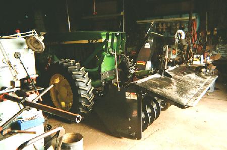 Orvil Krueger, Marion, Wis., had a problem with the front-mounted 7-ft. snowblower on his Deere 2955 4-WD tractor with cab.