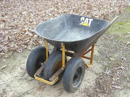 Gilbert says he originally intended to add just one wheel to make a 2-wheeled wheelbarrow, but then found another wheel about the same size. "I figured that if two wheels is good, then three has to be better. The three wheels all have heavy-duty wheel bearings and grease fittings."