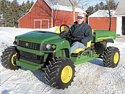 "It was fun to build and is even more fun to drive," says Thuerauf. "It has proven to be very reliable. I use it for projects around our farm as well as to entertain visitors. It has 4-wheel independent suspension which gives it a smooth ride on my grass waterways and buffer strips. The wheel spacing is 60 inches so it works well for checking my crops. When my two young daughters, ages 6 and 2, hear it start up, they're always quick to run outside, looking for a ride.