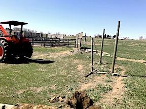 David Arko built his homemade post puller last winter so he could remove an old windbreak fence this spring. He built the puller from materials that were part of the fence he is taking down, using oil field pipes that the previous property owner had used for fence rails.
