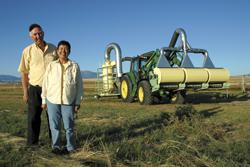 Most native grass seeds are hard to harvest and naturally shatter quickly once they are mature. Lee and Maggie Arbuckle, Montana ranchers, figured out how to harvest more species with a "combine" that uses counter-rotating comb and brush drums, and a vacuum.
