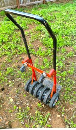 Adding the wheels was fast and easy on this particular hand truck. “Others might be more challenging, but all I had to do was pull one cotter pin,” he says. “The axle slipped straight out, and I added the wheels with some pvc spacers to keep them from rubbing into each other.”