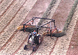 Another advantage, says Kuhn, is that the rakes closely follow the ground contour. "The rakes are in the same place they'd be if they were hooked to a tractor, so they follow the ground contour without gouging the ground or missing any hay," notes Kuhn.