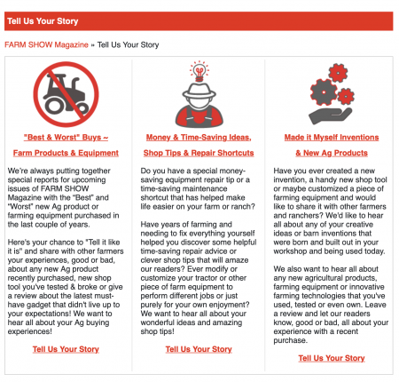 We want your best ideas, products, tips and tricks to appear in FARM SHOW magazine.