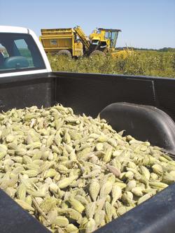 Now Phippen is working on pickers, dryers and processing. Part of the problem is that most pods ripen over a two-week period in August. While a snap bean picker harvested 90 percent of pods in plot research, it also picked up leaves, previous years' corn trash and other material that had to be removed. If it was set to blow light trash out, light pods went as well. Phippen's best results to date have been with a four row Uni-Harvester corn picker with a 30-in., 4-row Deere header. While it only harvested 70 percent of the available pods due, it picked up less trash. The researcher is now modifying the header for 10-in. row spacing, which he hopes will knock over fewer stems for a higher yield.