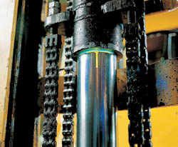 Finding leaks in engines, hydraulic systems, transmissions, and refrigeration equipment is easy with Tracerline fluorescent dye.