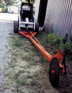The unit consists of a 30-in. dia., carbide-tipped blade mounted on the end of a steel boom that quick taches to the skid loader. The blade is driven by a hydraulic motor that operates off the loader's hydraulics.
