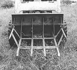 When Arvin De Cook got tired of using conventional methods to fight brush in his cattle pastures, he decided there had to be a better way. So he designed a brush fork that mounts in place of the bucket on his skidsteer loader. The brush fork operates just like a loader bucket, except that it doesn't disturb as much soil.