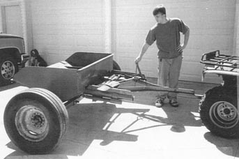 "I looked around and found an old loader bucket, wheeels and a bunch of angle iron. After gathering everything I would need, along with a couple new parts, I welded everything together," says Madden.