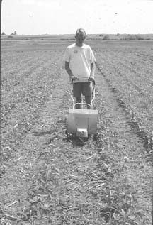 Donald is currently having a four-row string trimmer custom-built. It will use a wire line or flexible chain instead of nylon line to improve performance, he says.