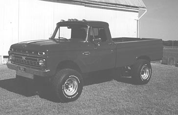 "The original truck was 2-WD 1/2-ton with a 6-cyl. gas engine. All I used off the truck was the body, interior and the electrical. I mounted the body on the 1-ton frame with transfer case off a 4-WD 1966. To this frame I added a Dana 60 front axle from a 1979 F-350 and a Dana 70 rear end from a 1978 E-350. Power is provided by a Perkins diesel which came from a Chrysler-built bread delivery truck.