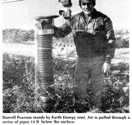 "Equalizing the pressure with fresh air drawn through an earth system would eliminate the suction of cold outdoor air into a house," Pearson says. "This equalizing pressure could save a homeowner as much as 30 percent on his fuel bill."