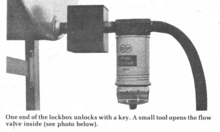 "When a tank of fuel was worth $90, a padlock was enough. Now that a tank may hold much more in fuel, it's worth the extra effort to protect it," says Dick Bittney of Webster City, Iowa, inventor of a new "lock box" for fuel storage tanks.