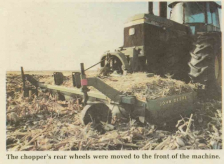 "The only real problem we've had with the chopper conversion is with the chain connecting the sprockets on the PTO. Stalks get in there and cause problems. We plan to solve the problem by enclosing the chain and sprockets in an oil bath."
